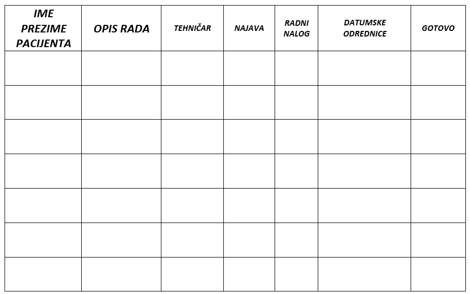 Praćenje protetskih pacijenata (tablica protetskih pacijenata)